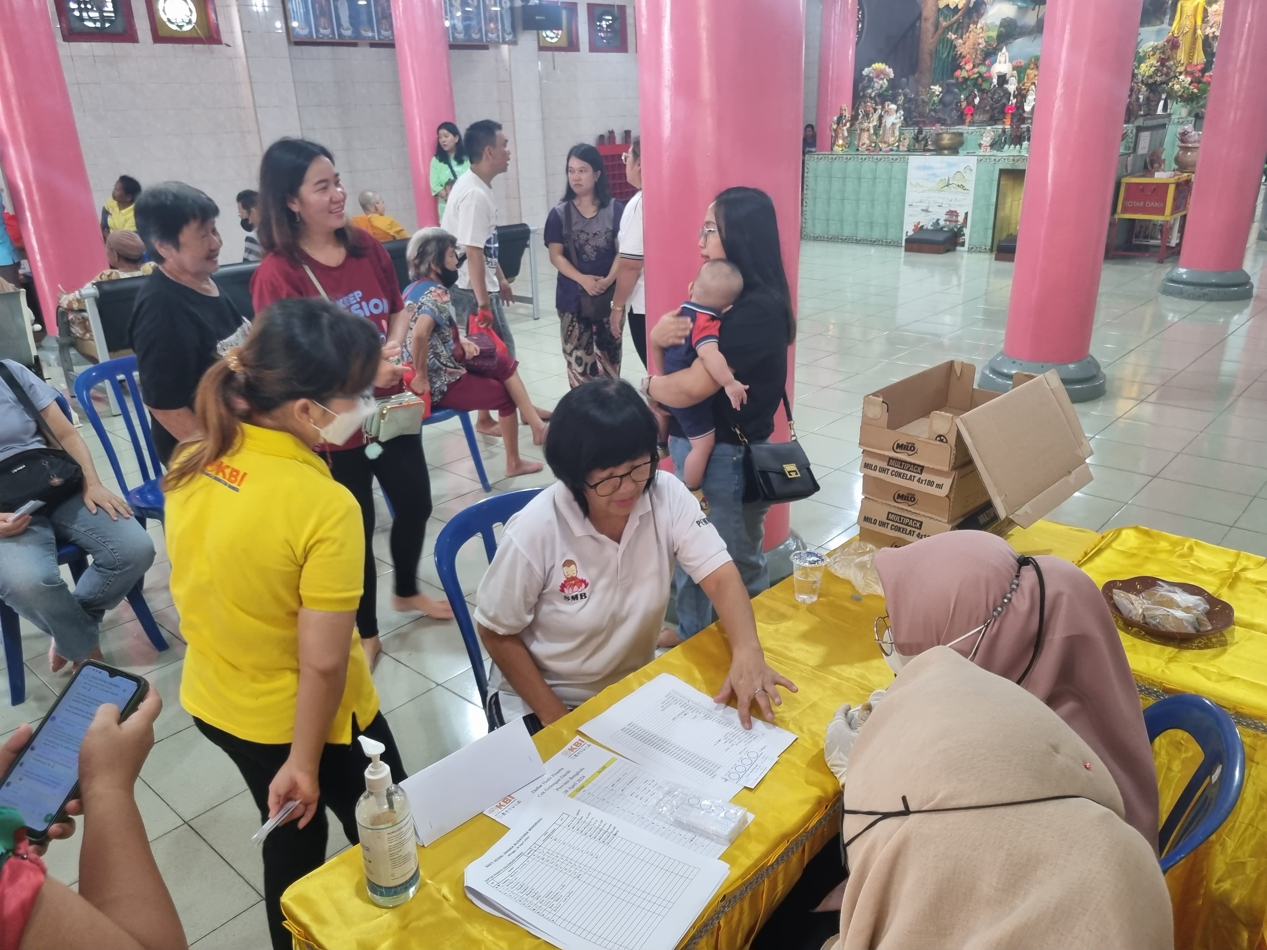 Selain Pengobatan & Pemeriksaan Gratis, BAKSOS KBI Provinsi Bengkulu juga membuka Cek Golongan Darah Bagi umat Buddhis dan anak – anak yang belum mengetahui golongan darahnya lalu, memberikan susu kotak kepada peserta cek golongan darah.