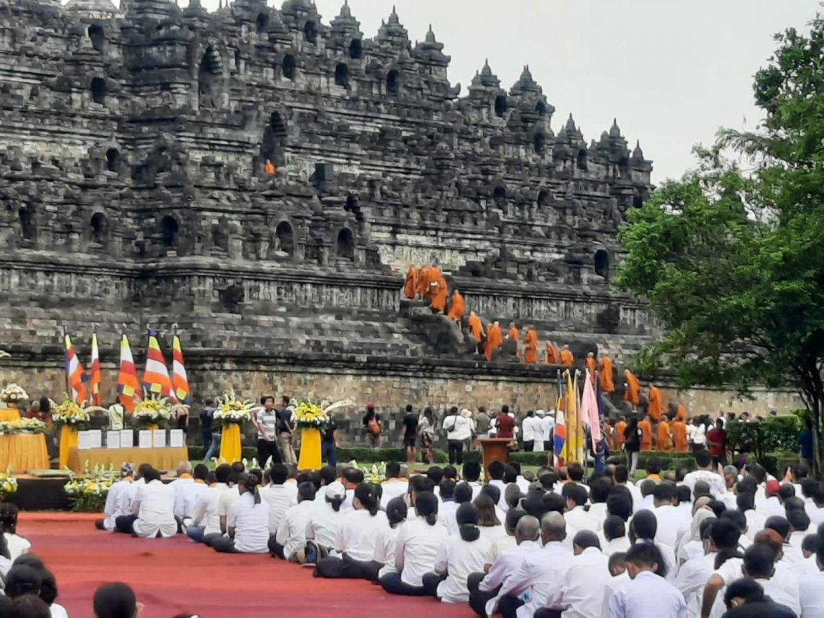 Ribuan Umat Buddha Peringati Magha Puja di Pelataran Candi Borobudur